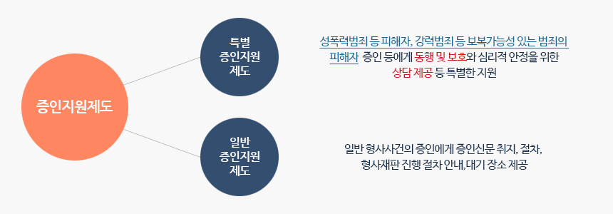 형사사건 증인으로 법원 등에 출석하여 증언하는 증인들이 안전하고 편안한 마음으로 증언할 수 있도록 지원하기 위한 제도